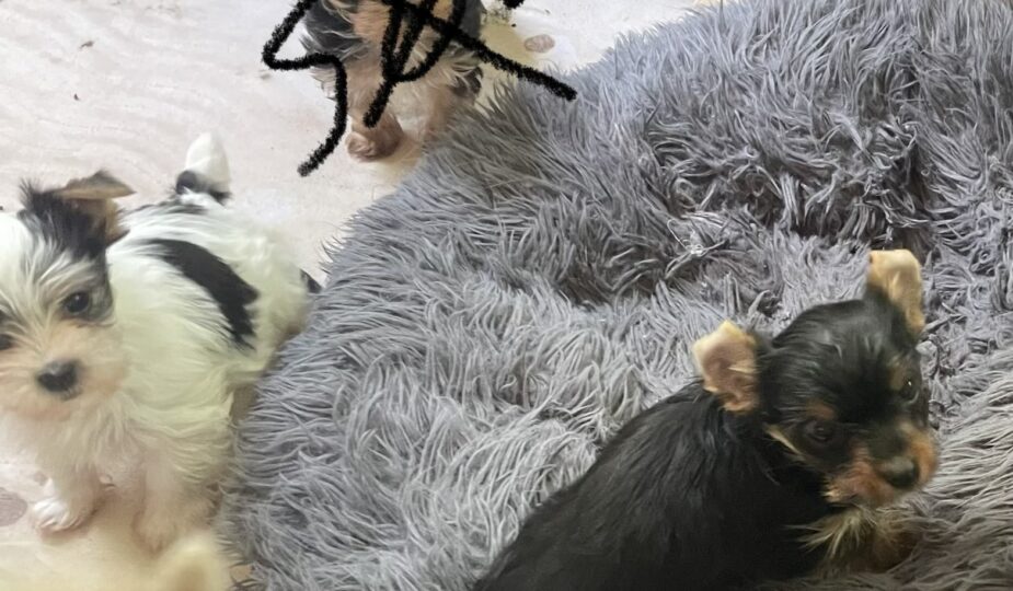 These adorable Yorkshire terrier puppies are available, turned 8 wks on 04/14/26. Both girls, available with AKC or discounted w/o.