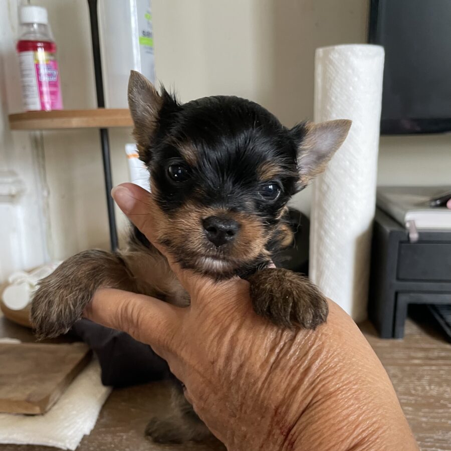 All of our Yorkshire terrier puppies are raised in our home, underfoot, and pre-spoiled. Our puppies are AKC registered, have age-appropriate vaccinations, routine worming, health record, and transition puppy food.